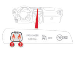 Los testigos 2 y/o 3 se encienden en la pantalla de testigos de cinturón y de airbag frontal del acompañante cuando uno o varios pasajeros traseros se desabrochan el cinturón.
