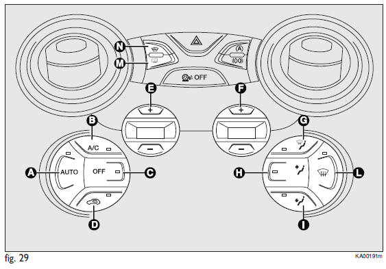 Pulsando el botón - disminuye la temperatura requerida en el habitáculo hasta alcanzar el valor LO (refrigeración máxima).