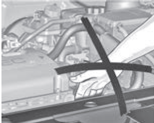 | Solamente realice verificaciones de compartimentos del motor cuando la ignición esté apagada. El ventilador de enfriamiento puede activarse aún si la ignición está apagada. |